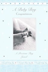 On The Birth Of Your New Baby Boy Range: Perspectives Item Number: 100003 Approximate Size: 9" X 4.75" Pricing Code: 070 Click on card for Enlarged Image. |
