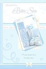 A New Baby Son Range: Sentiments Item Number: 490173 Approximate Size: 9" X 6" Pricing Code: 075 Click on card for Enlarged Image. |