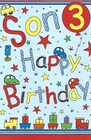 Son Happy 3rd Birthday Range: Jelly Beans Item Number: 206063 Approximate Size: 9" X 6" Pricing Code: 075 Click on card for Enlarged Image. |