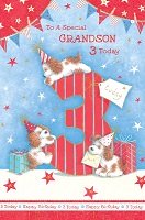 A Special Grandson 3 Today Happy Birthday Range: Jelly Beans Item Number: 206083 Approximate Size: 9" X 6" Pricing Code: 075 Click on card for Enlarged Image. |