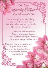 For Our Lovely Mum On Mothers Day Range: Item Number: 13352001 Approximate Size: 6" X 4" Pricing Code: 30/EE Click on card for Enlarged Image. |