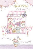 Just For You Nanny On Mothers Day Range: Item Number: 658022 Approximate Size: 9" X 6" Pricing Code: 75/JJ Click on card for Enlarged Image. |