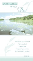 A Sympathy Card The Sad Loss Of Your Dad Range: Inspiration Of The Heart Item Number: 150046 Approximate Size: 7.75" X 5.25" Pricing Code: 060 Click on card for Enlarged Image. |