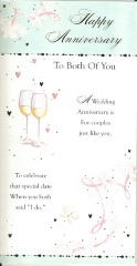 To Both of You On Your Anniversary Range: Sentiments Item Number: 490066 Approximate Size: 9" X 6" Pricing Code: 075 Click on card for Enlarged Image.