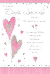 Wedding Anniversary greetings To A Special Daughter and Son In Law On Your Wedding Anniversary Range: Sentiments Item Number: 490514 Approximate Size: 9" X 6" Pricing Code: 075 Click on card for Enlarged Image. |