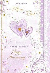 To A Special Mum and Dad Wishing you both a Happy Anniversary Range: Mirage Item Number: 146009 Approximate Size: 10" X 6.75" Pricing Code: 250 Click on card for Enlarged Image.